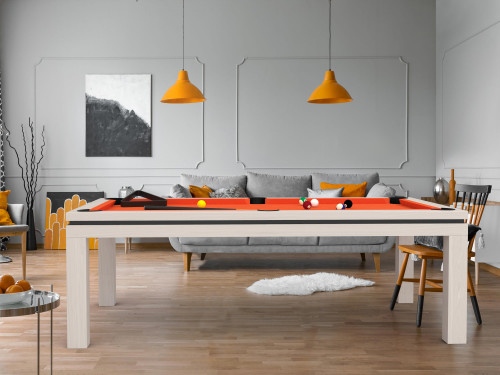 Simplicité et modernité qualifient ce billard transformable en table au design contemporain fait de droites assemblées à l’équerre. La sobriété et la légèreté des lignes donneront à votre pièce un caractère chic et bien de notre temps qui séduira.