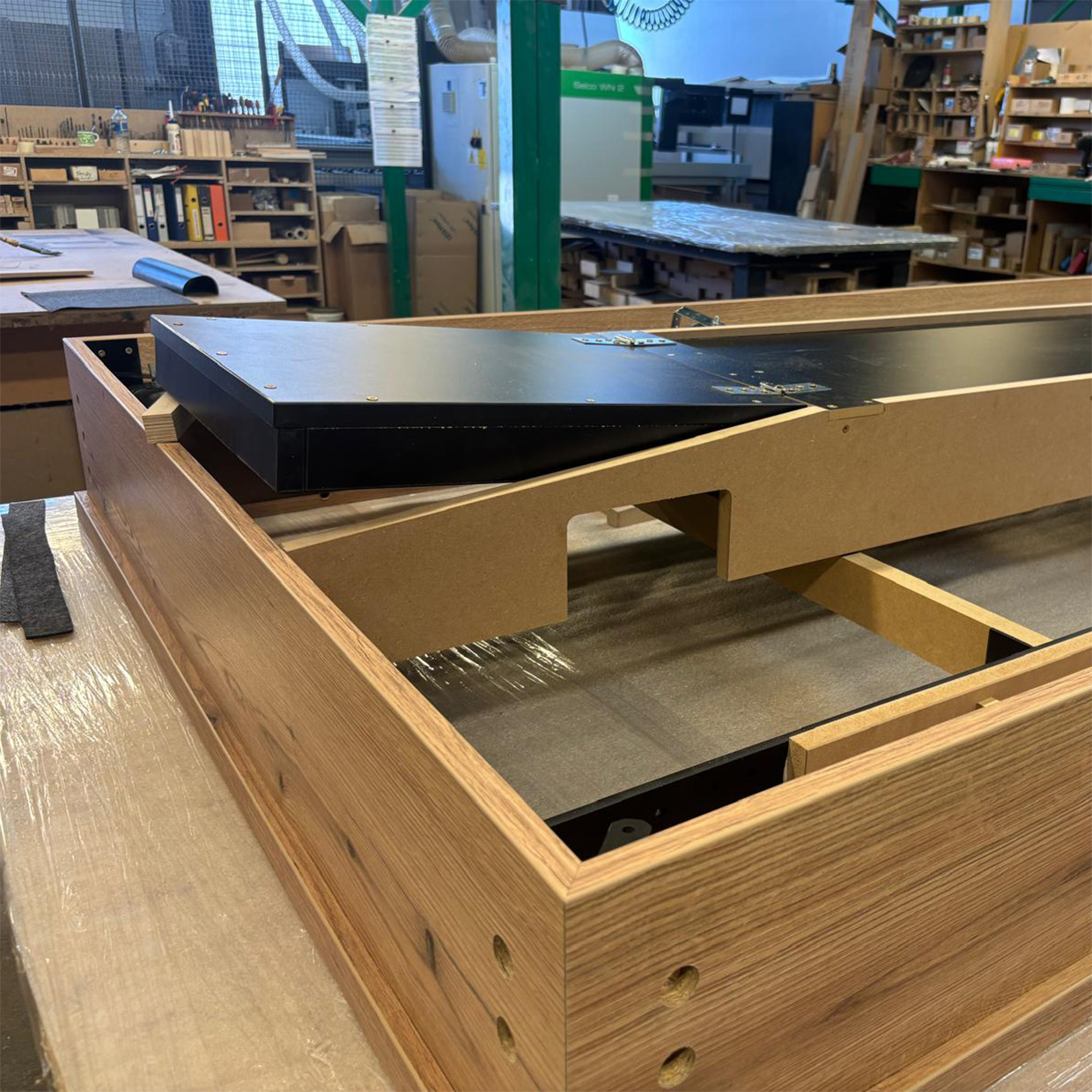 En option, ce modèle peut être équipé d’un système de récupération de billes centralisé, apportant plus de confort et de praticité, comme sur les billards professionnels.