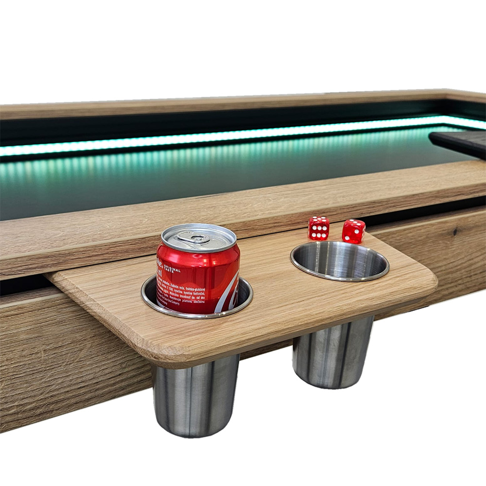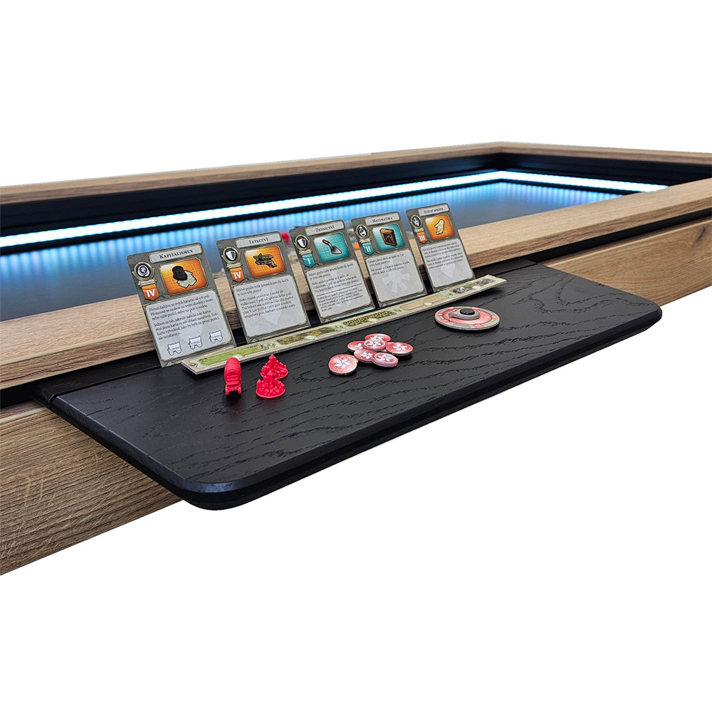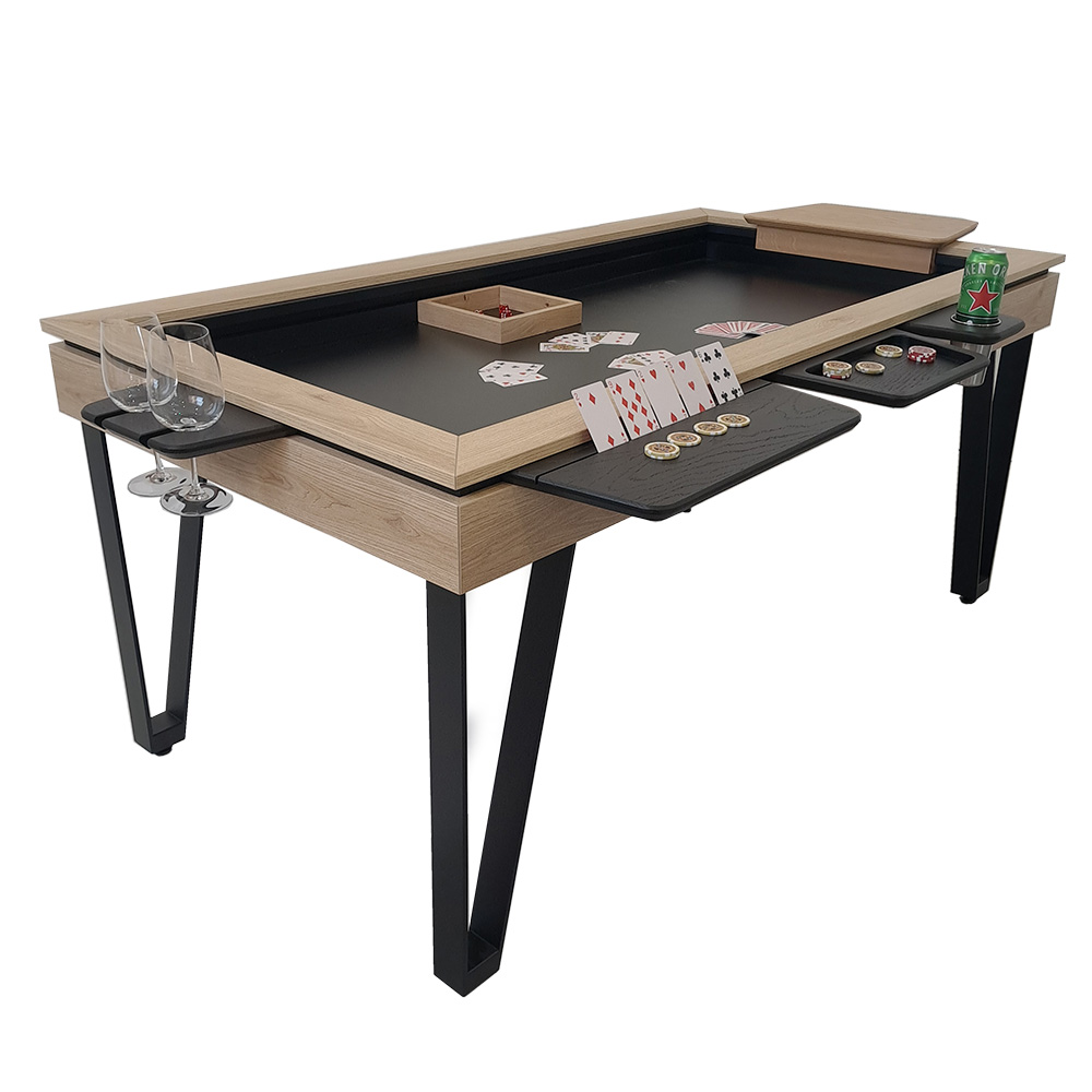 Grâce à un système aimanté ingénieux, il devient possible d’ajouter des repose-verres, des supports pour cartes, des tapis de jeu ou encore des solutions d’éclairage, selon les besoins.