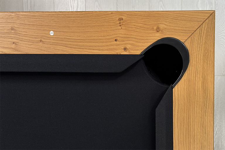 Sur les modèles à poches (américain, anglais), chaque entrée est équipée d’une pièce de protection en caoutchouc qui amortit la bille et préserve la structure.