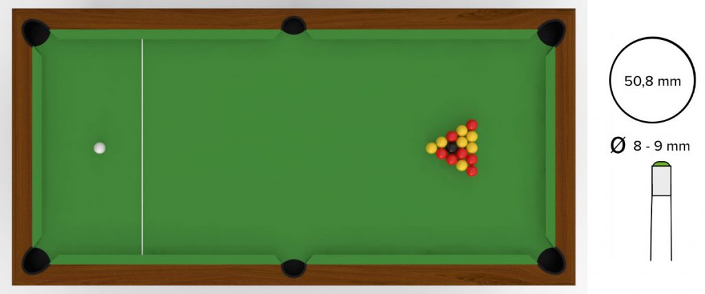 - Chaque joueur a un groupe de billes de 50,8mm (rouges ou jaunes) à empocher.