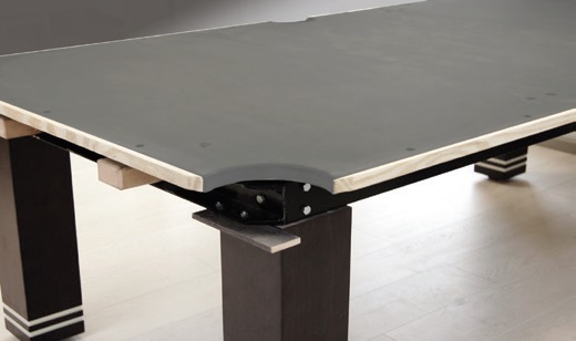Cette conception permet une hauteur sous table de 63 à 65 cm, idéale pour le passage des jambes lorsque le billard est utilisé avec un plateau.