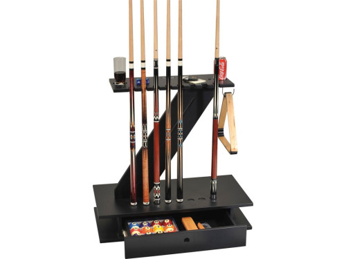 Porte-queues de billard noir et moderne conçu pour être posé où vous le souhaitez dans votre salle de billard.